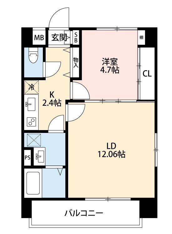 | 築年月 | 2014年2月 | 間取り | 1LDK( 洋室4.7畳(6階)/LD12.06畳(6階)/K2.4畳(6階) ) | 専有面積 | 40.88m2 |