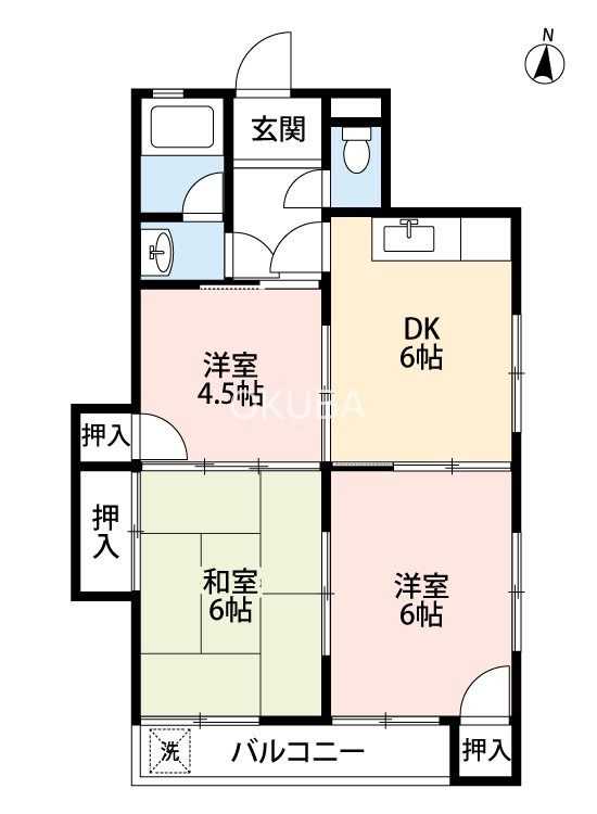| 築年月 | 1984年6月 | 間取り | 3DK( DK6畳/和室6畳/洋室4.5畳/洋室6畳 ) | 専有面積 | 45m2 |