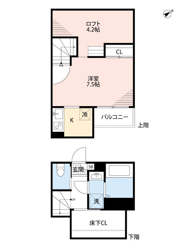 | 築年月 | 2021年7月 | 間取り | 1K( 洋室7.5畳(2階) ) | 専有面積 | 21.3m2 |