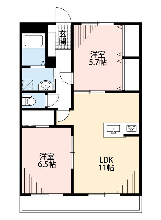 築年月 2024年3月  間取り 2LDK( LDK11畳(1階)/洋室6.5畳(1階)/洋室5.7畳(1階) ) 専有面積 55.76m2