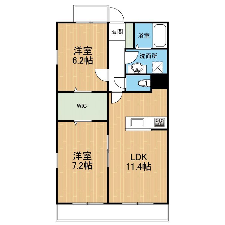| 築年月 | 2016年5月 | 間取り | 2LDK( LDK11.4畳/洋室7.2畳/洋室6.2畳 ) | 専有面積 | 56.05m2 |